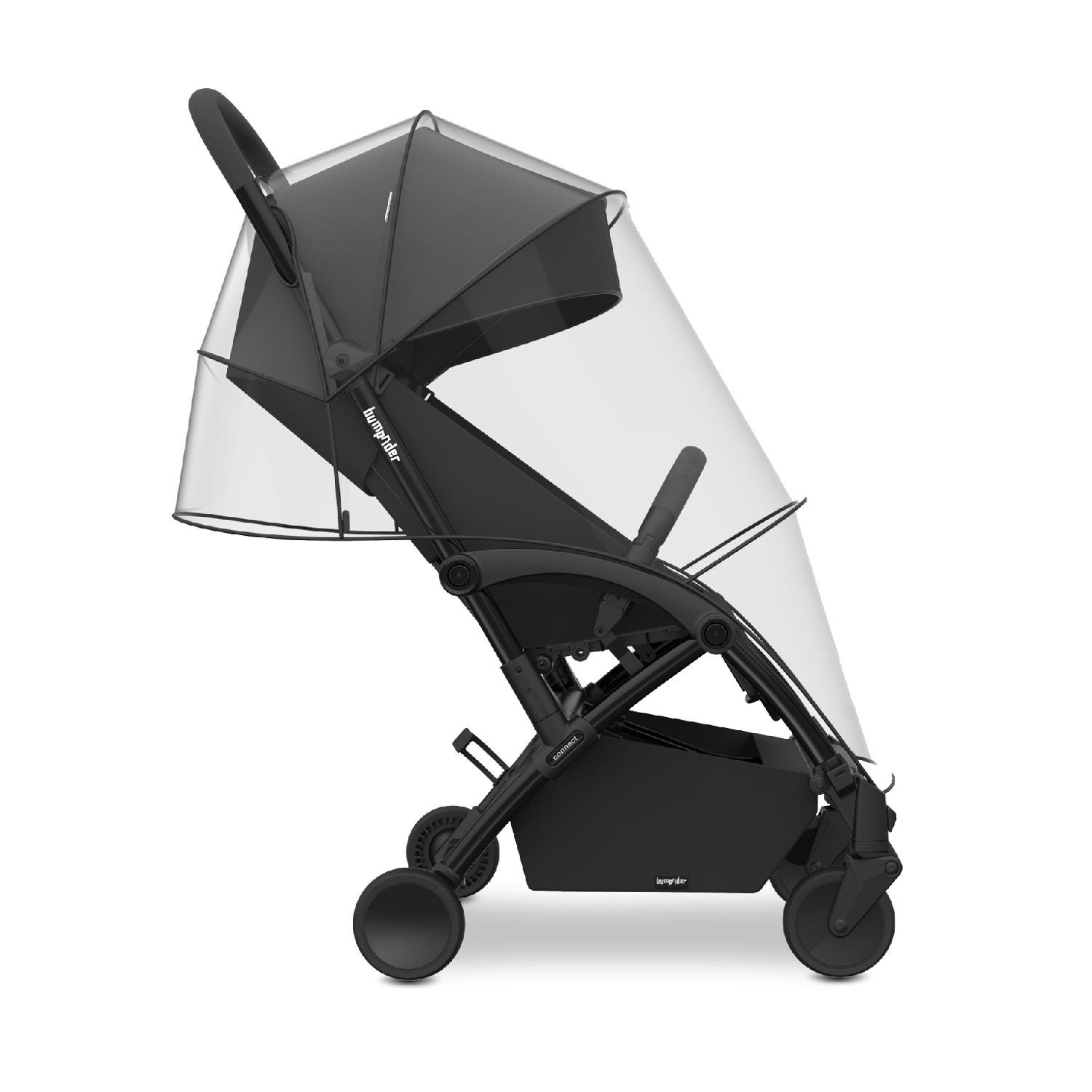 Bumprider Connect³, bebek arabasında kullanabileceğiniz ve çocuğunuzu yağmurdan korumak için harika bir ürün. Bağlanabilir yağmurluk çocuğunuzu kötü hava koşullarından korur. Kurulumu kolaydır ve güneş tekrar çıktığında sepette kolayca saklanabilir.